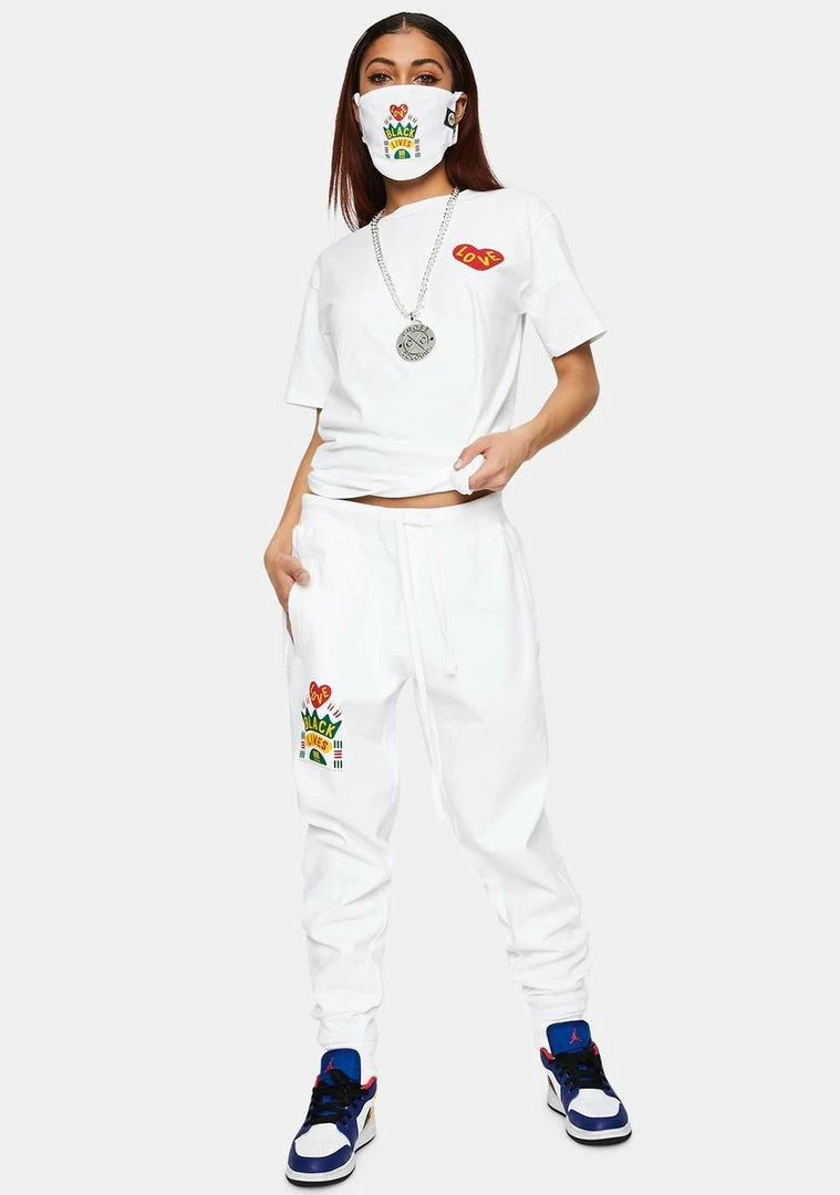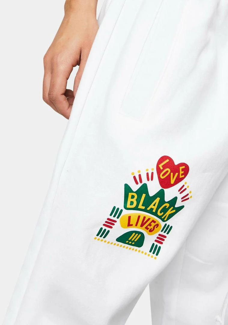 choose everyday to love not hate. These sikk joggers have a drawstring waistband, side slant pockets, and Black Lives Matter graphics down the side.