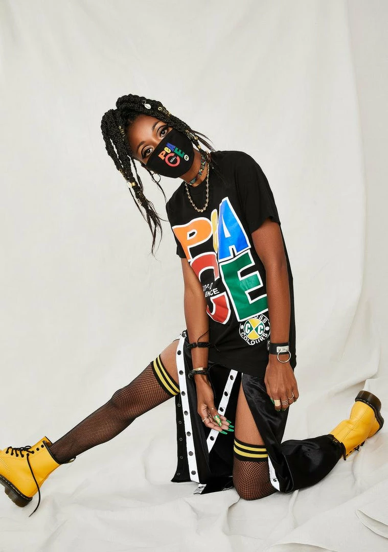 because you always spread peace! This graphic face mask has the word peace on it with the Cross Colours logo.