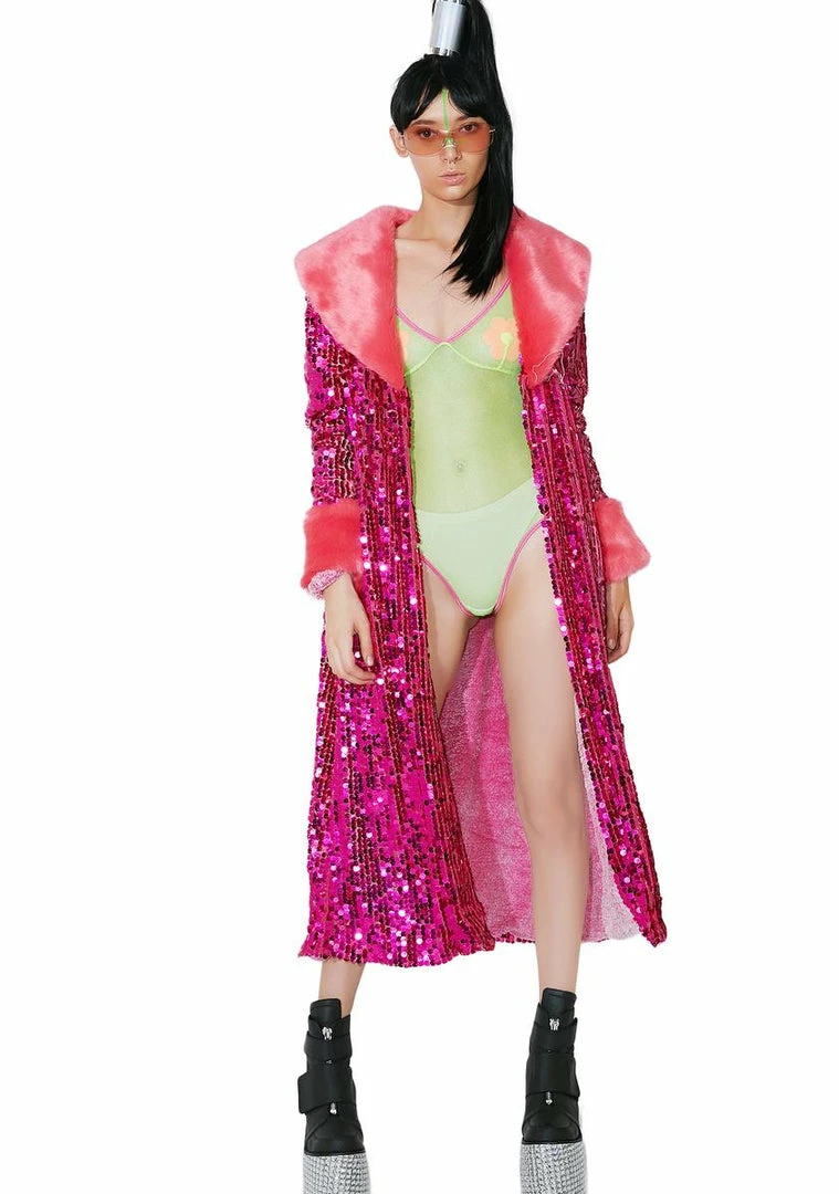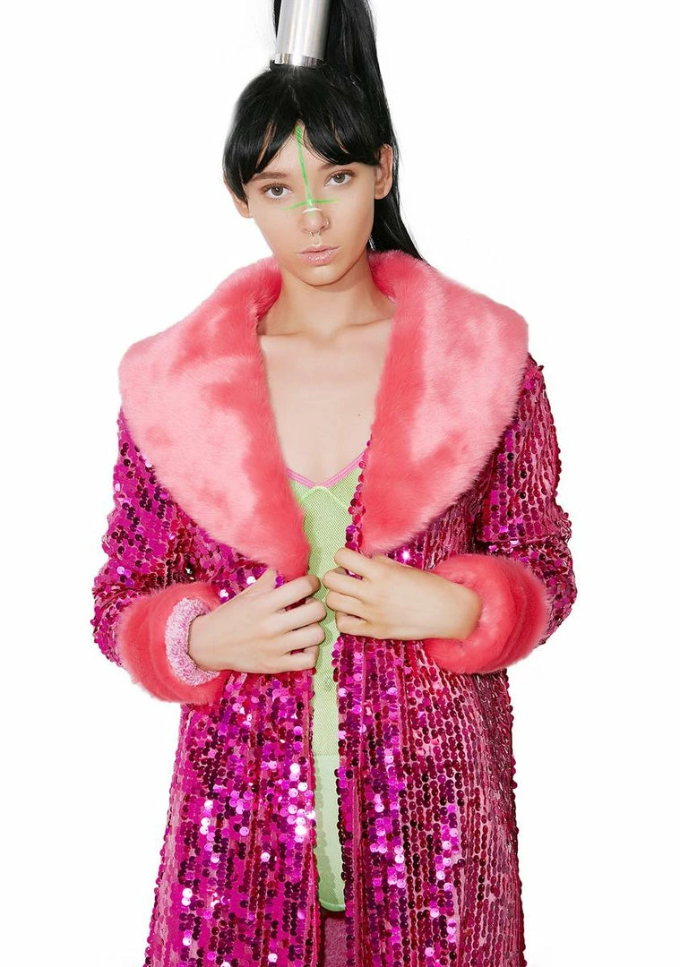 cuz ya donât gotta look boring just to stay warm! This sikk af coat is totally covered in sequins with vegan fur collar Nâ cuffs and ultra plush fleece lining.