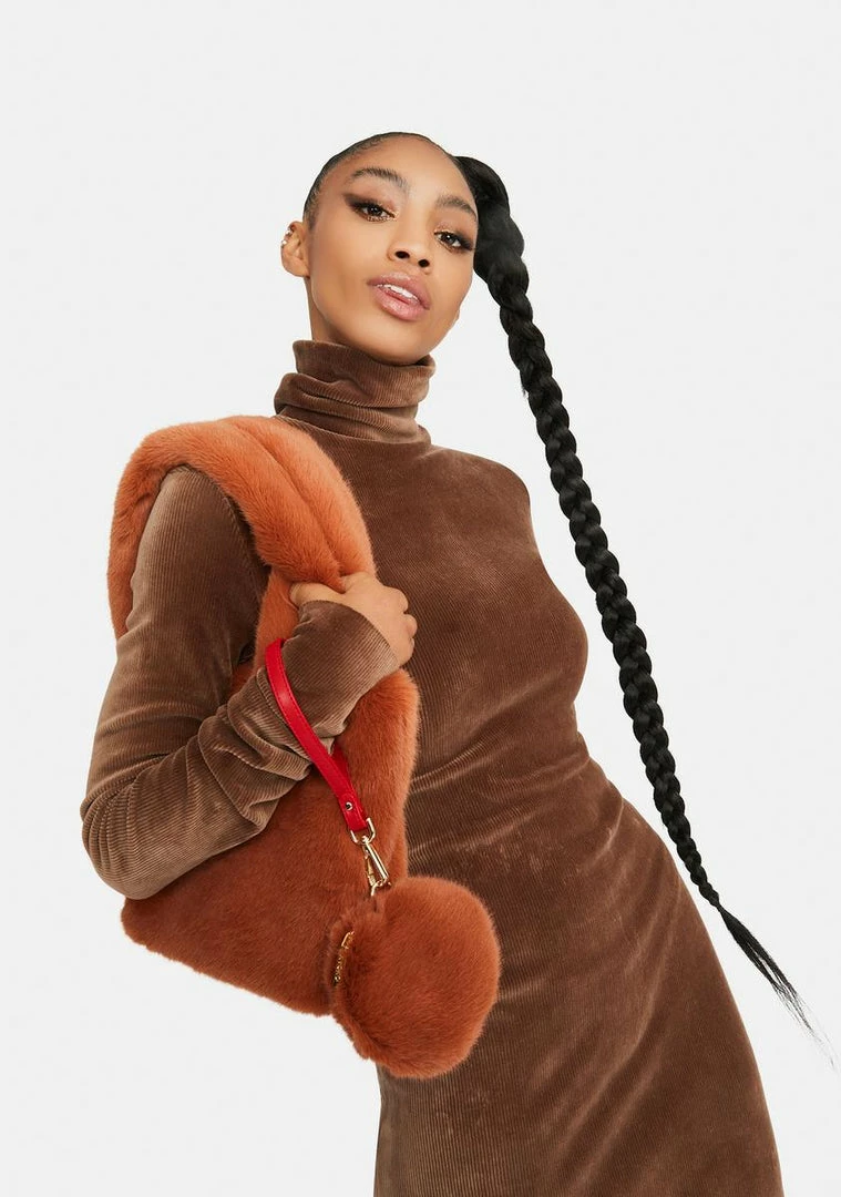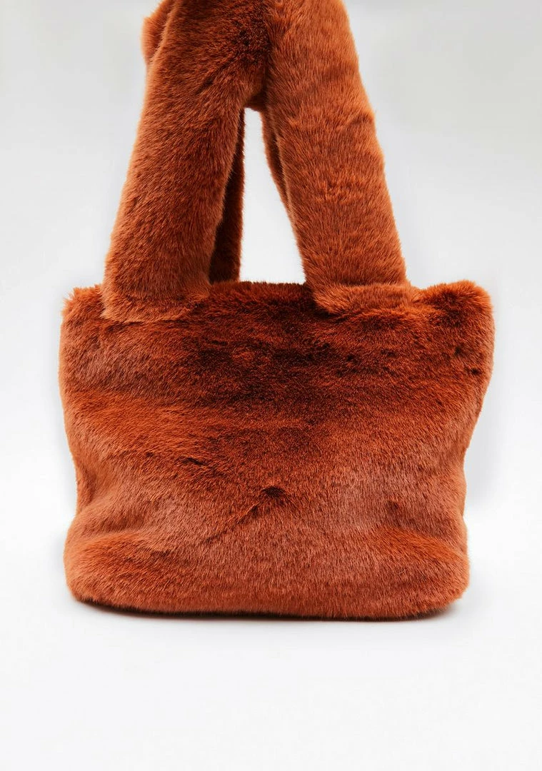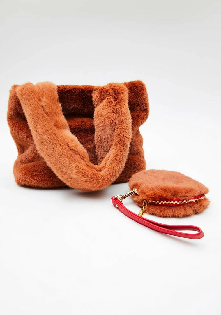 cuz you’re so bougie. This handbag has a soft faux fur construction, a spacious main compartment, and a zipper closure.