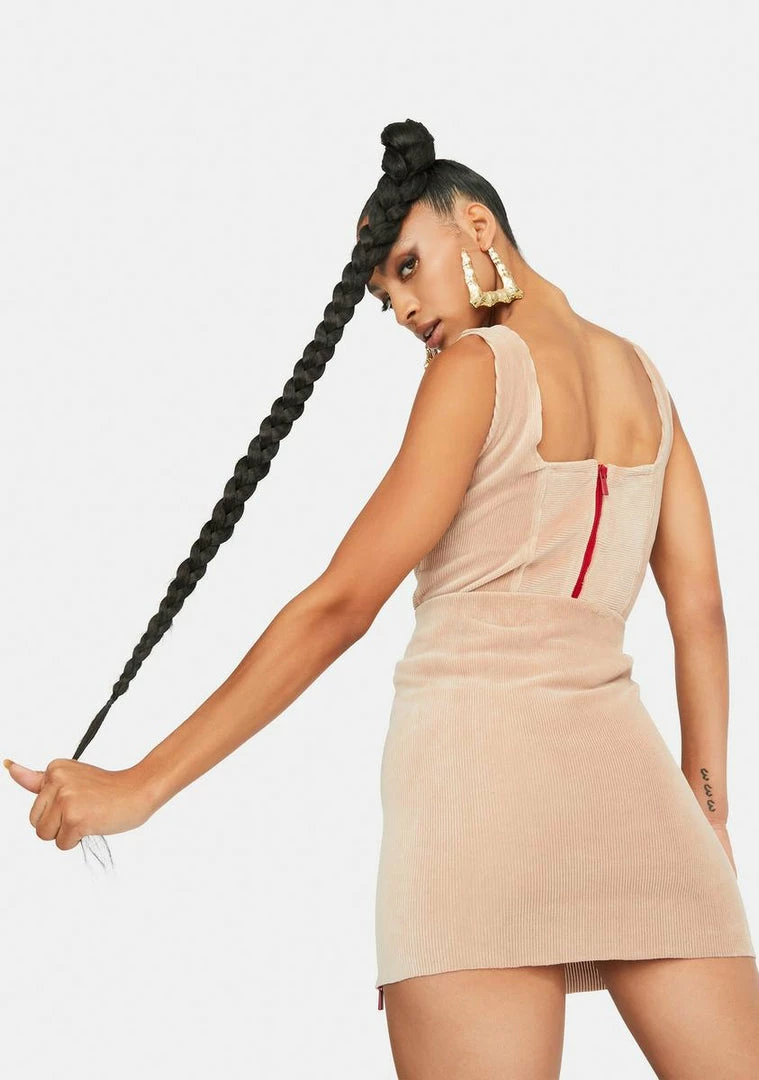 you’re servin’ sass and class. This mini skirt has a soft ribbed construction, an elastic waistband, and thigh high side splits with contrast zippers.