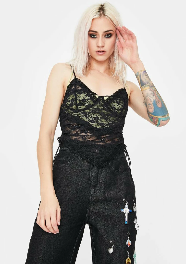 got ya goin tha extra mile for âem, bb! Show off what u got while wearing this cropped cami top with a lacey top layer, ruched siding and strappy back.