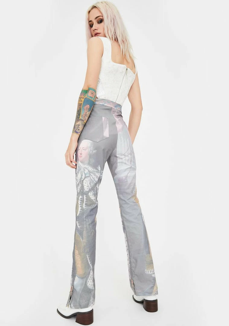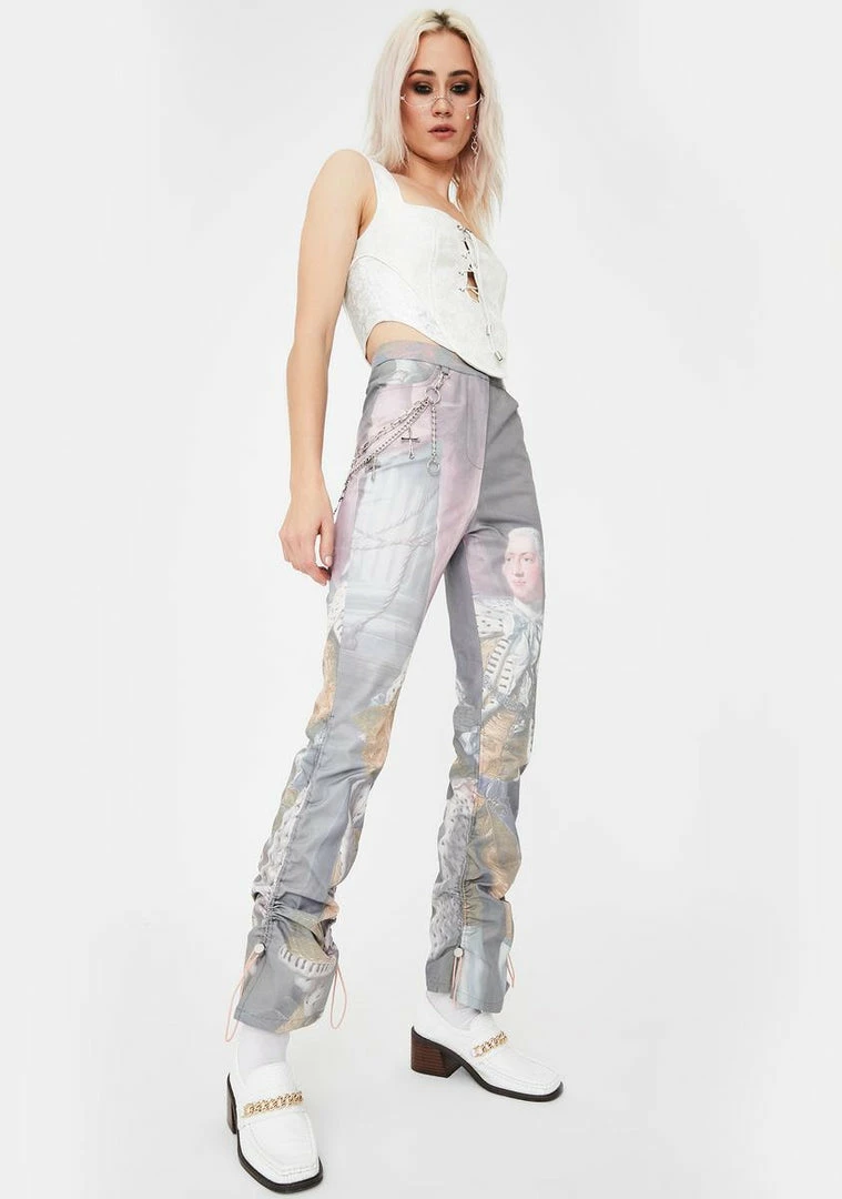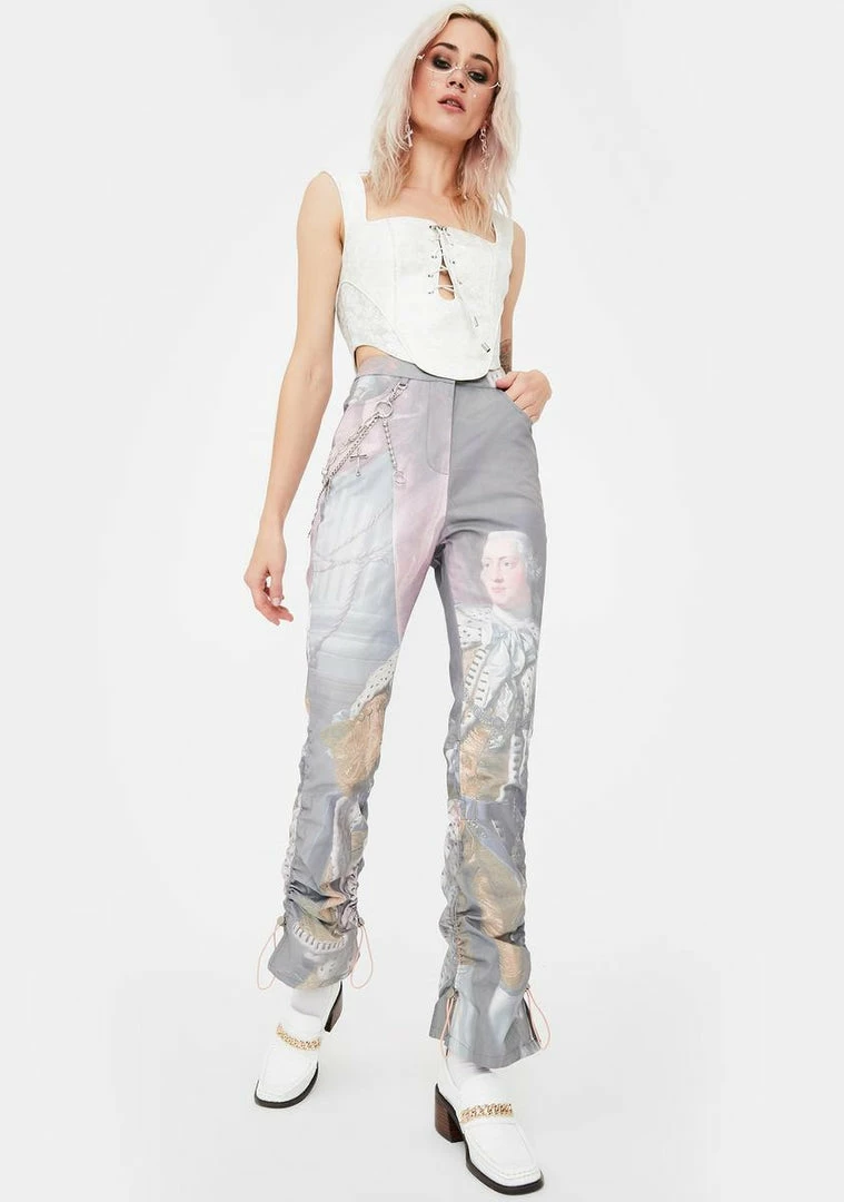 cuz ur a living LEGEND bb! Make sure they remember u looking amazing while wearing these high rise trouser pants with a painting graphic print on them and adjustable drawstring ruching on the sides.
