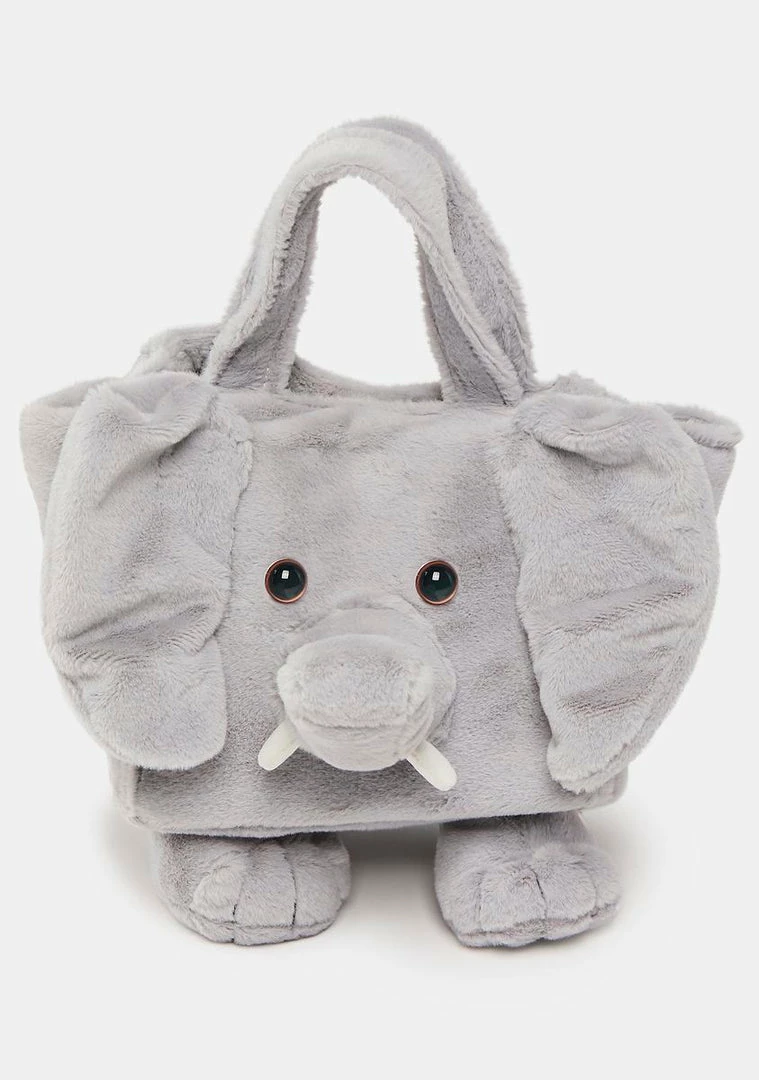 cuz we’re ear for you! This small handbag has a soft-touch faux fur construction, an elephant face at front, a patch pocket at back, a press-stud closure, and top handles.