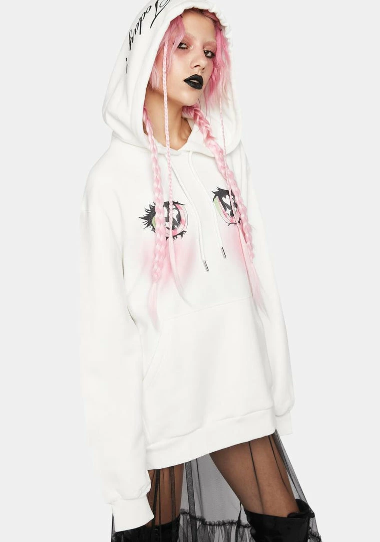 got you dazzlin’ them! This oversized sweatshirt has a twinkle-eyed graphic printed at front, extra-long sleeves, “Yes Or Nodress Today?” printed on the drawstring hood, and a kangaroo pocket.