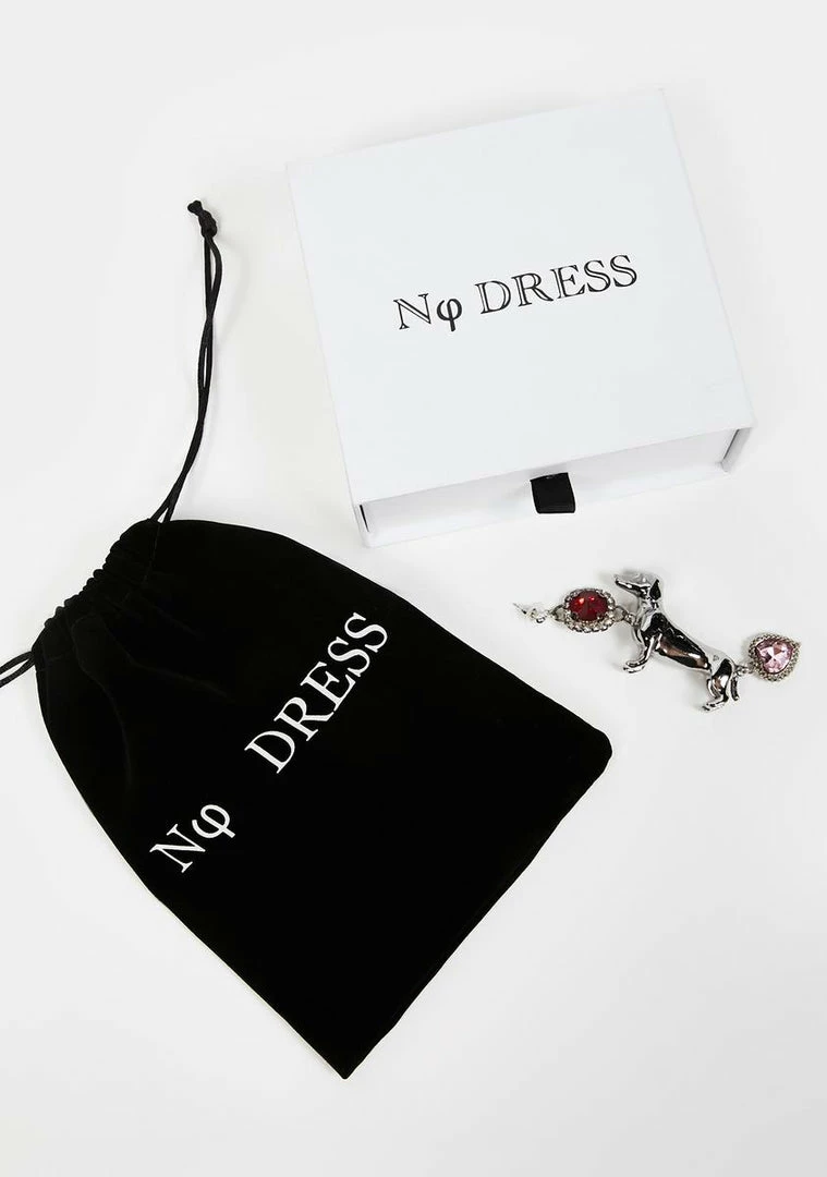 cuz youâre a glam animal. These rhinestone drop earrings have red and pink gemstones, dog charms, post back closures, and a logo branded storage pouch.