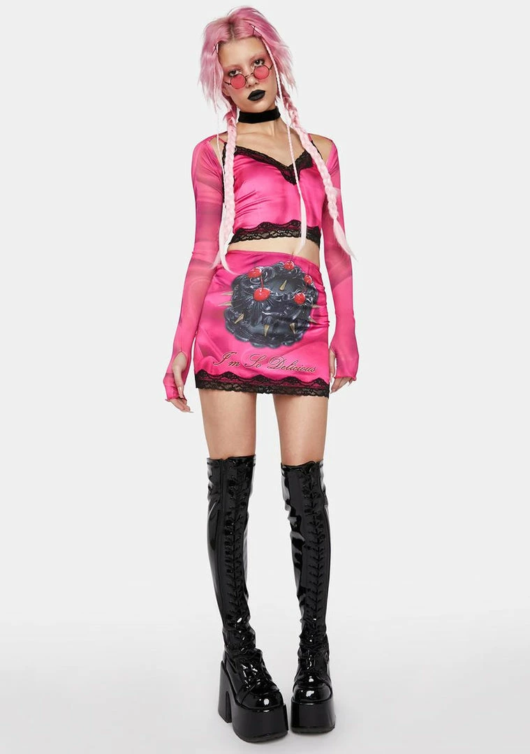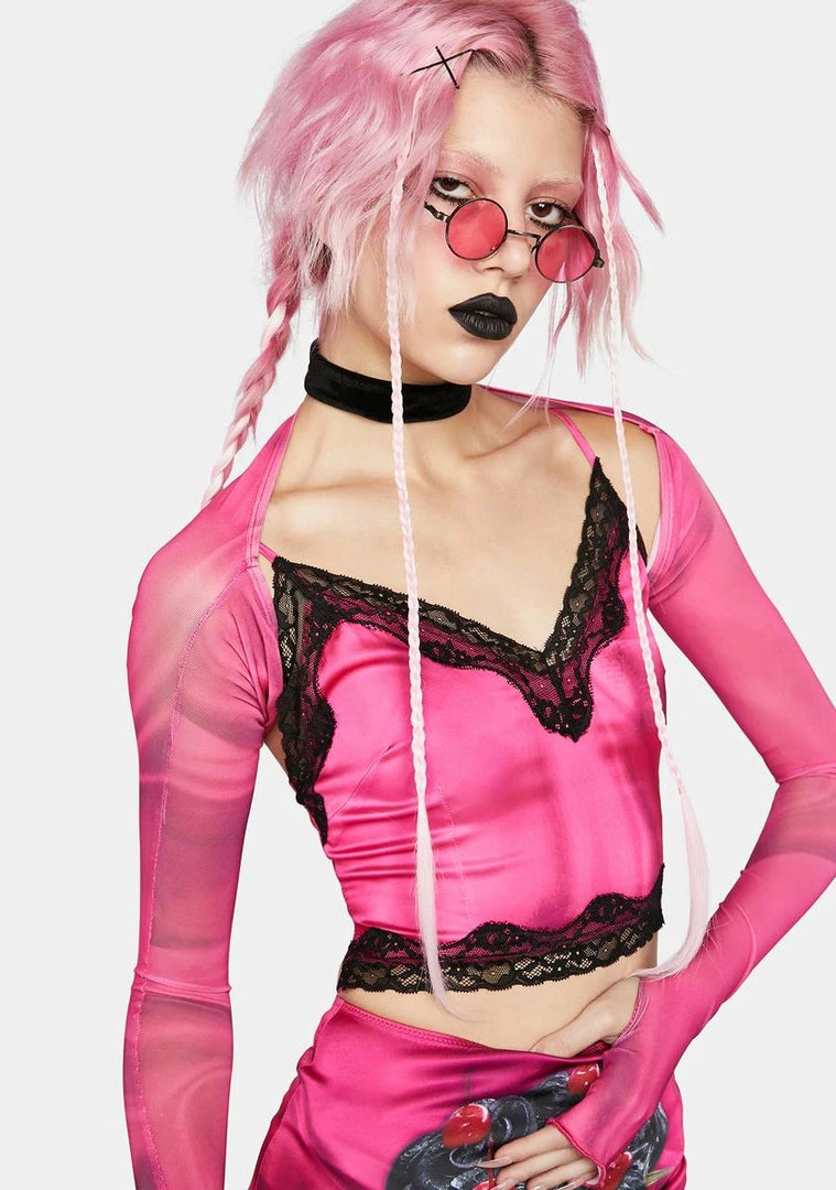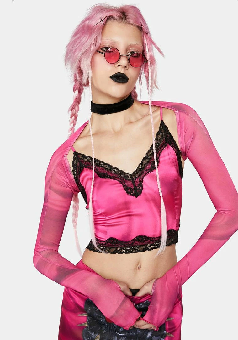 cuz you’re all set for a great day. Look amazing in this cami set that includes a cami top that has a plunging neckline, a lace trim, adjustable shoulder straps, a cropped fit, a back zip closure, an all over rose print, and a matching shrug with long sleeves and thumbhole cuffs.