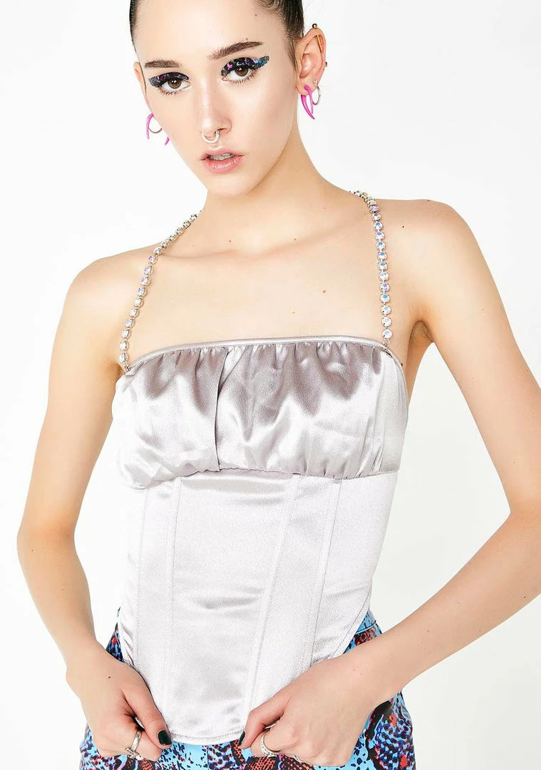 cuz serving glamour comes easy to ya. This luxurious corset top has a square neckline, diamond straps N’ a back zipper closure so you can look exxxpensive.
