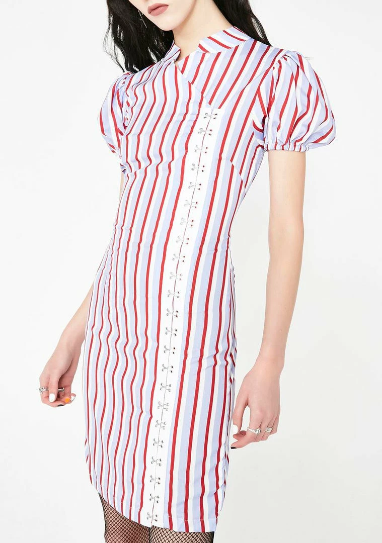 cuz they worried about the wrong things babe. Youâre the center of the attention in this cute AF striped mini dress that has puff sleeves and hook-and-eye closures on the front.